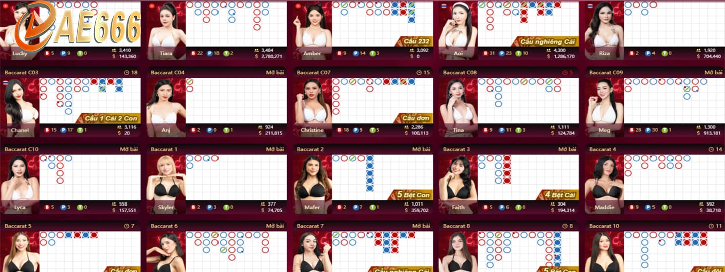 Hiện tại, AE666 đang hợp tác với nhiều nhà phát hành game uy tín nhằm cung cấp kho trò chơi phong phú, chất lượng. Nổi bật như: Baccarat, Rồng Hổ, Tài Xỉu, Blackjack, Xúc Xắc, Roulette,…